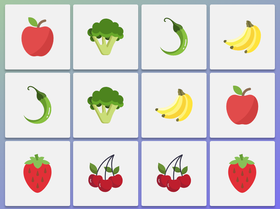 - Retournez deux cartes. Si les images sont identiques, le jeu laisse les cartes visibles